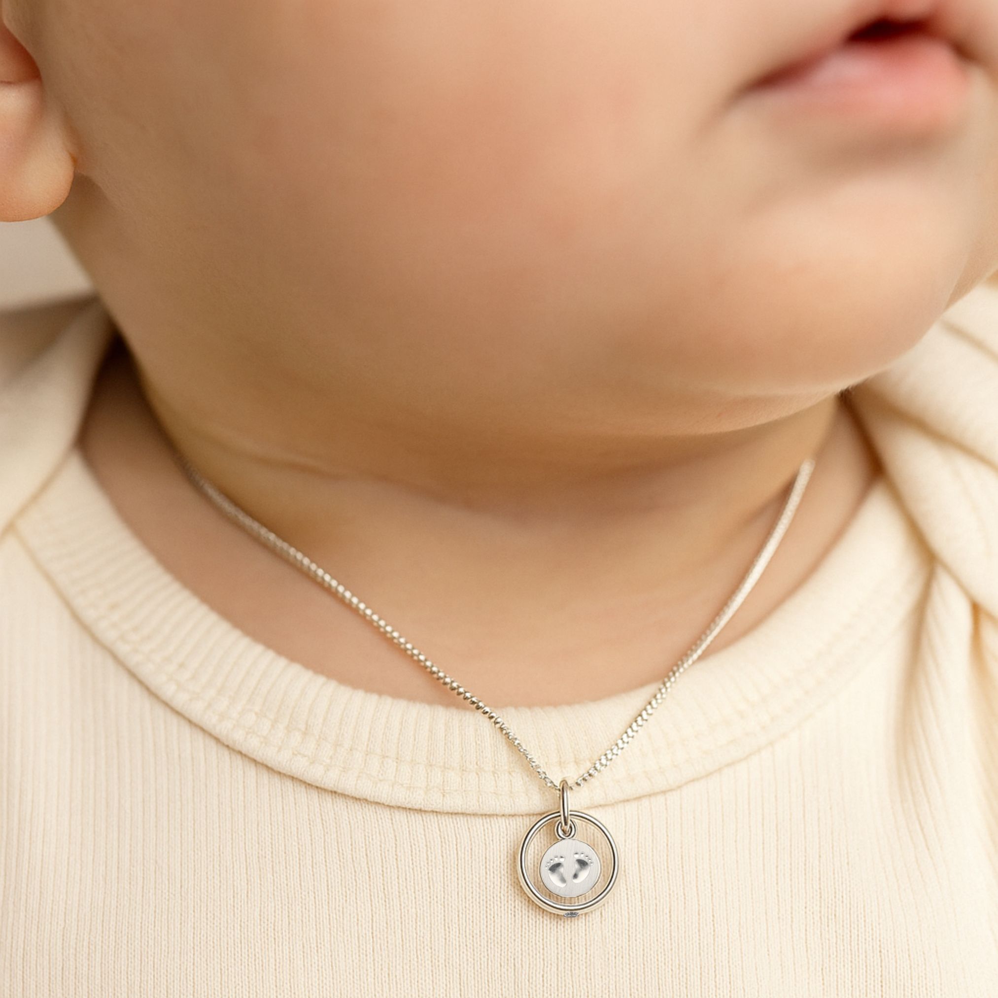 Mit einem Durchmesser von ca. 11,1 mm ist der Anhänger zart und dennoch ausdrucksstark. Er eignet sich perfekt als Geschenk zur Geburt oder zur Taufe und wird zu einem bleibenden Erinnerungsstück, das den besonderen Beginn eines neuen Lebens begleitet.