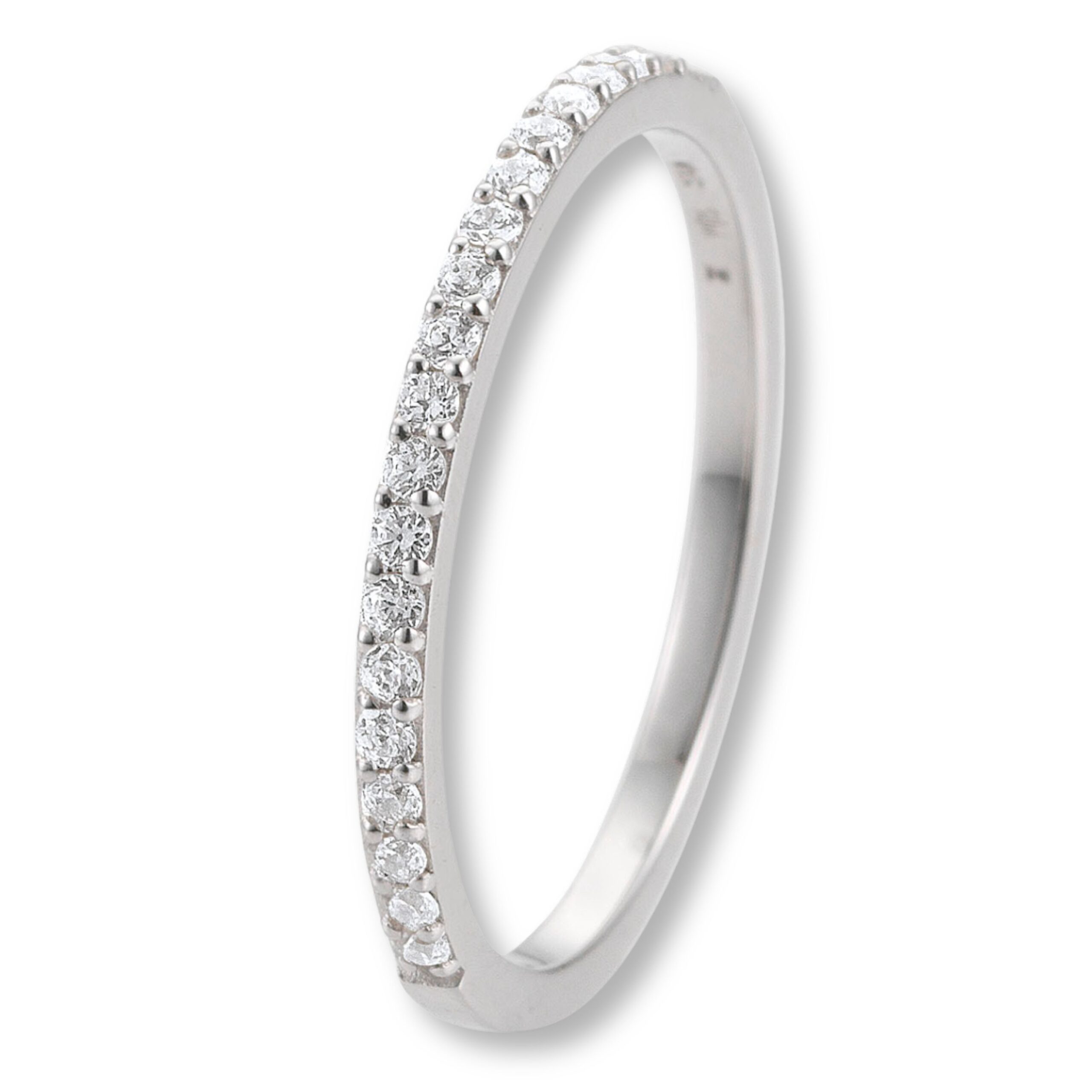 Mit 26 funkelnden Brillanten, die 60 % ausgefasst sind, strahlt dieser Ring eine zeitlose Raffinesse aus. Die Diamanten im Brillantschliff,
