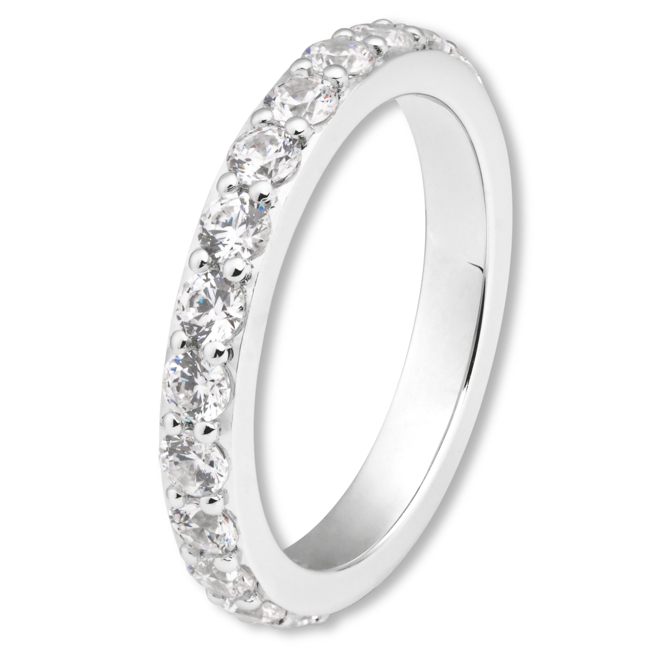 Mit einer Breite von 3,00 mm liegt er sanft am Finger, präsent aber unaufdringlich. Die Ringoberfläche ist zu 60% mit strahlenden Brillanten besetzt,