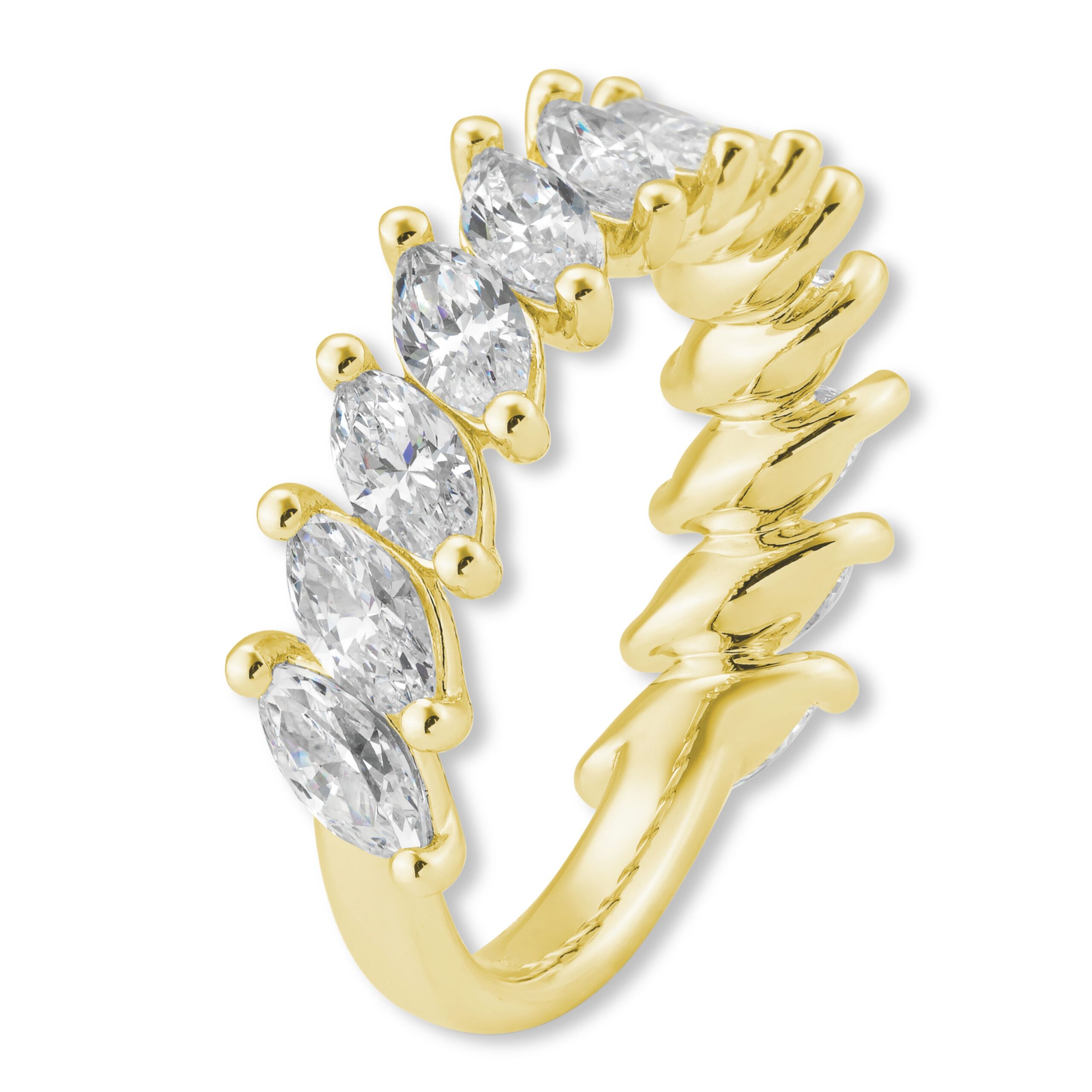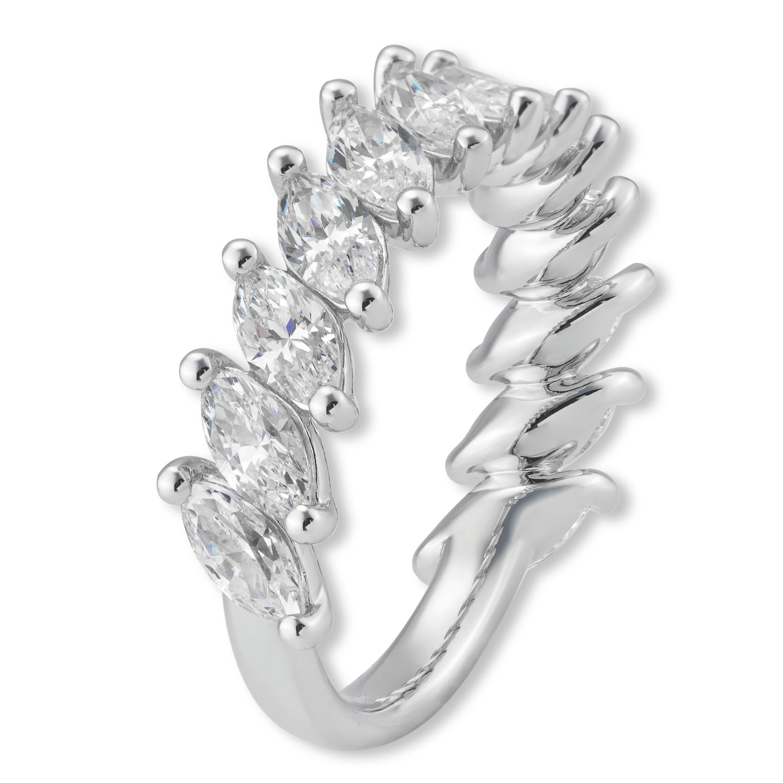 Zu 60 % mit Diamanten im Navette-Schliff gefasst, strahlt dieser Ring eine besondere Magie aus.