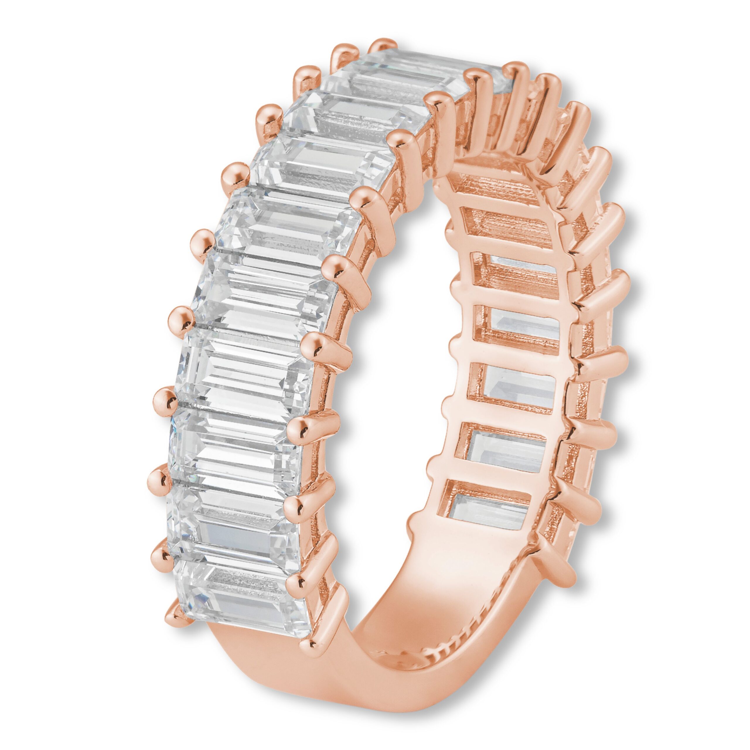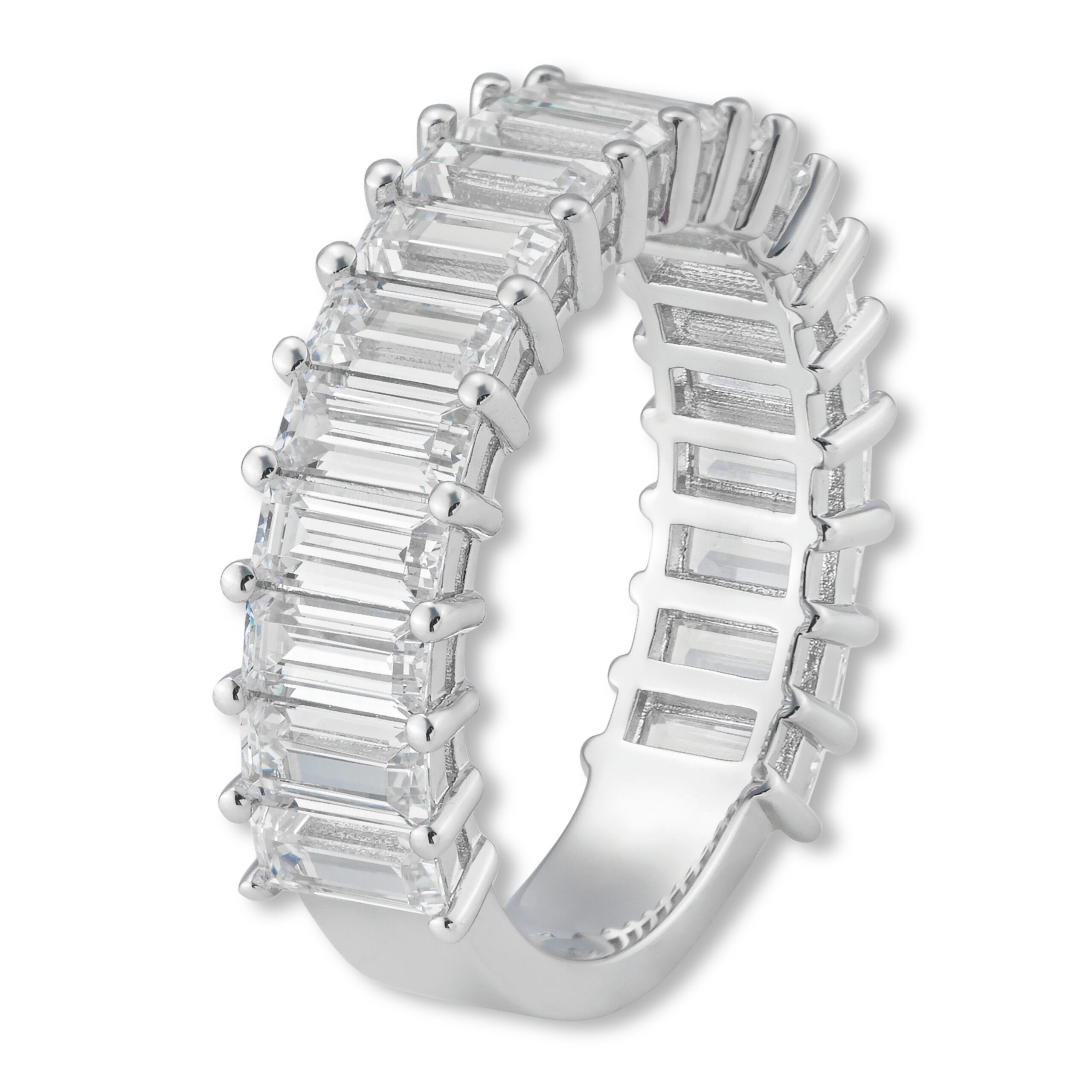 Etwa 60% der Ringschiene erstrahlen durch Diamanten im Baguetteschliff – 19 funkelnde Steinchen, die zusammen eine ruhige, geometrische Poesie bilden.