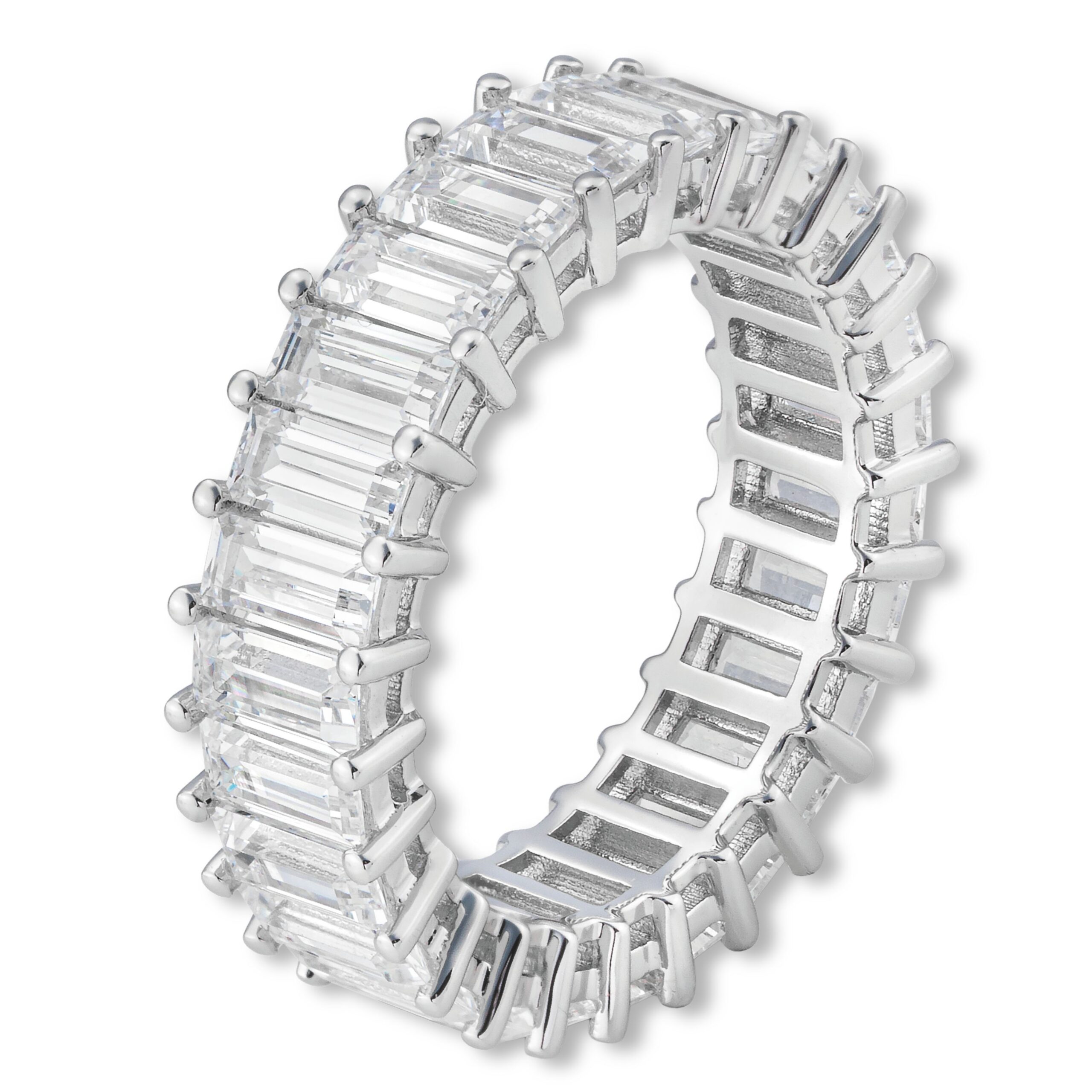 Die präzisen Baguette-Diamanten fangen das Licht in klaren Linien ein und schenken dem Finger ein ruhiges, doch eindrucksvolles Funkeln.