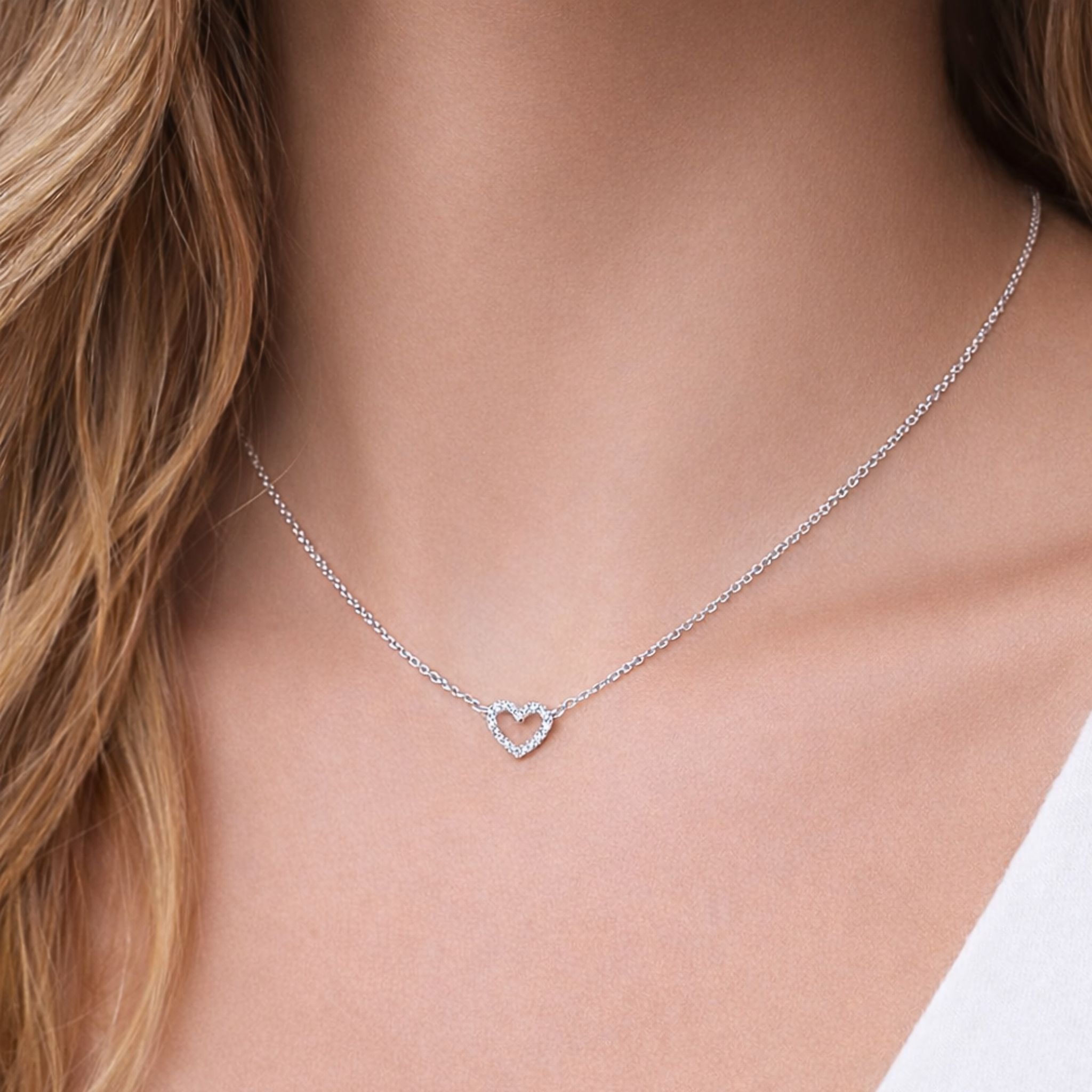 Feines Herz-Collier aus 925 Silber mit Zirkonia