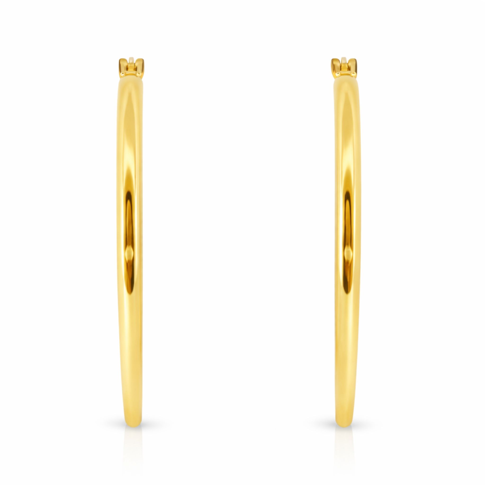 Das schlichte, glänzende Design lässt den warmen Goldton perfekt zur Geltung kommen und verleiht den Creolen eine klare, edle Ausstrahlung.