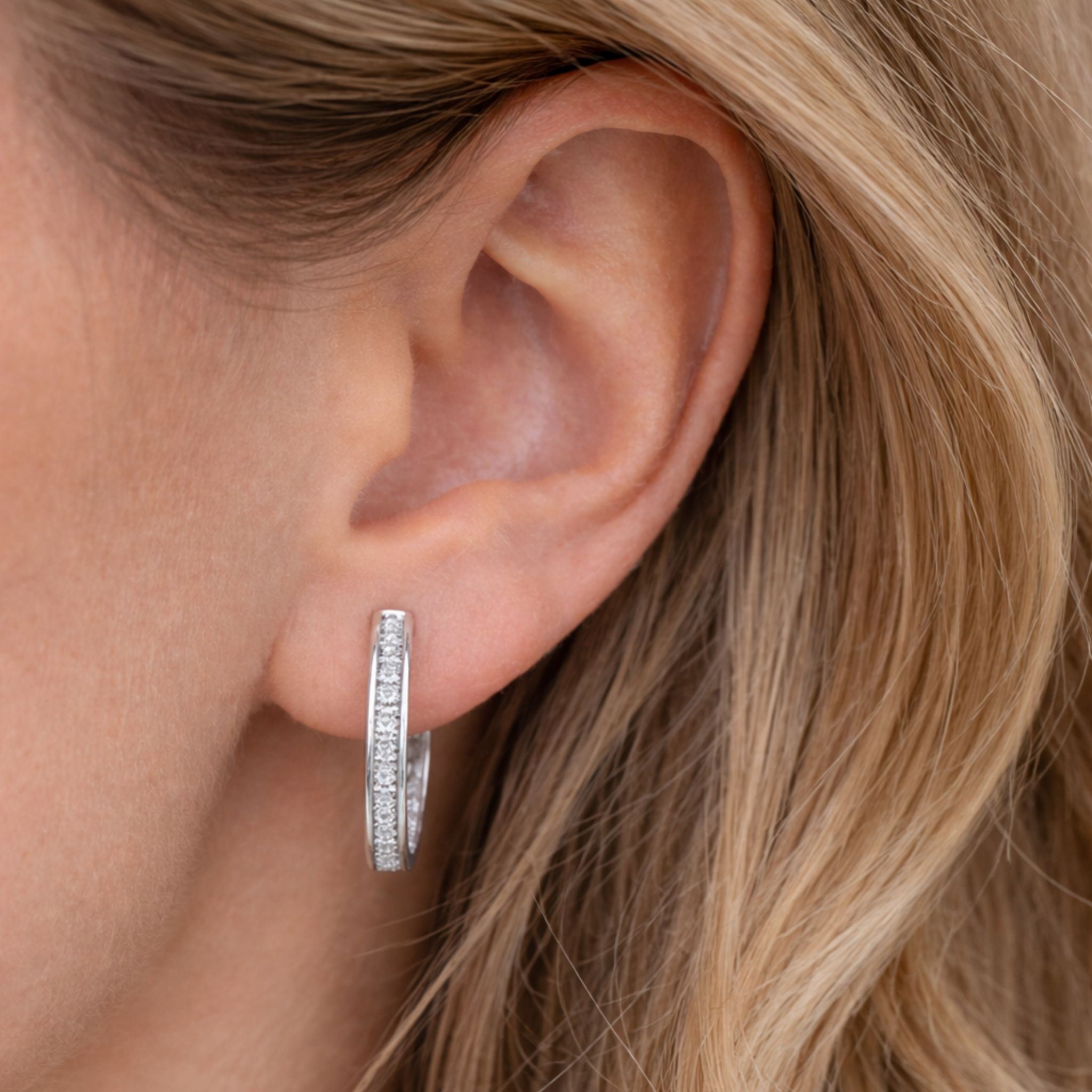 - Design: klassische Creolen mit glitzernder Steinreihe