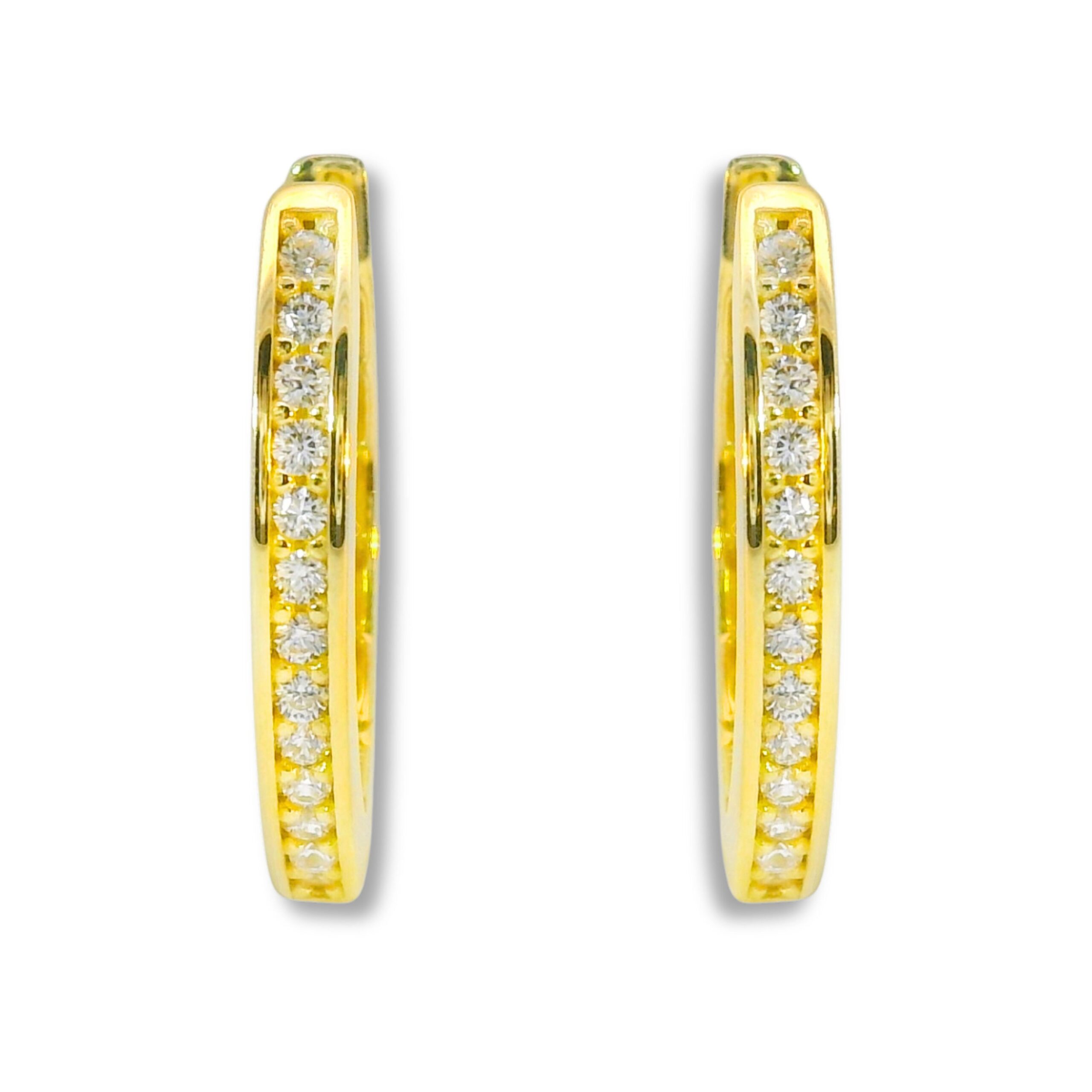 Der warme Glanz des Gelbgoldes bildet einen harmonischen Kontrast zum strahlenden Funkeln der Steine und macht die Creolen zu einem besonderen Blickfang.