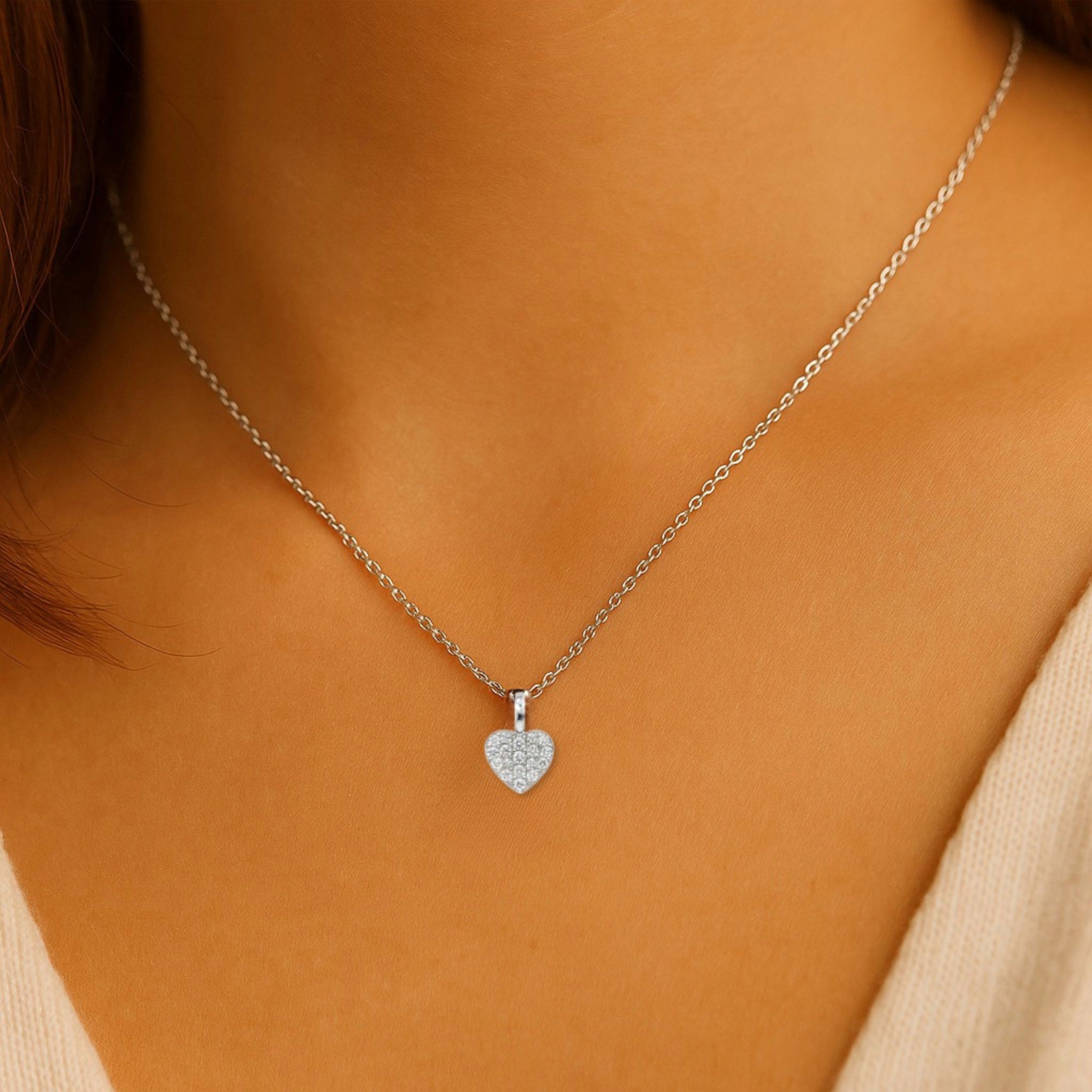Dieser elegante Herz-Anhänger steht für zeitlose Schönheit und liebevolle Details. Gefertigt aus edlem 925 Sterling Silber, überzeugt er durch seine feine Verarbeitung und seinen dezenten Glanz. Die Oberfläche des Herzens ist mit funkelnden Zirkonia-Steinen besetzt, die das Licht wunderschön reflektieren und dem Schmuckstück eine edle Ausstrahlung verleihen.