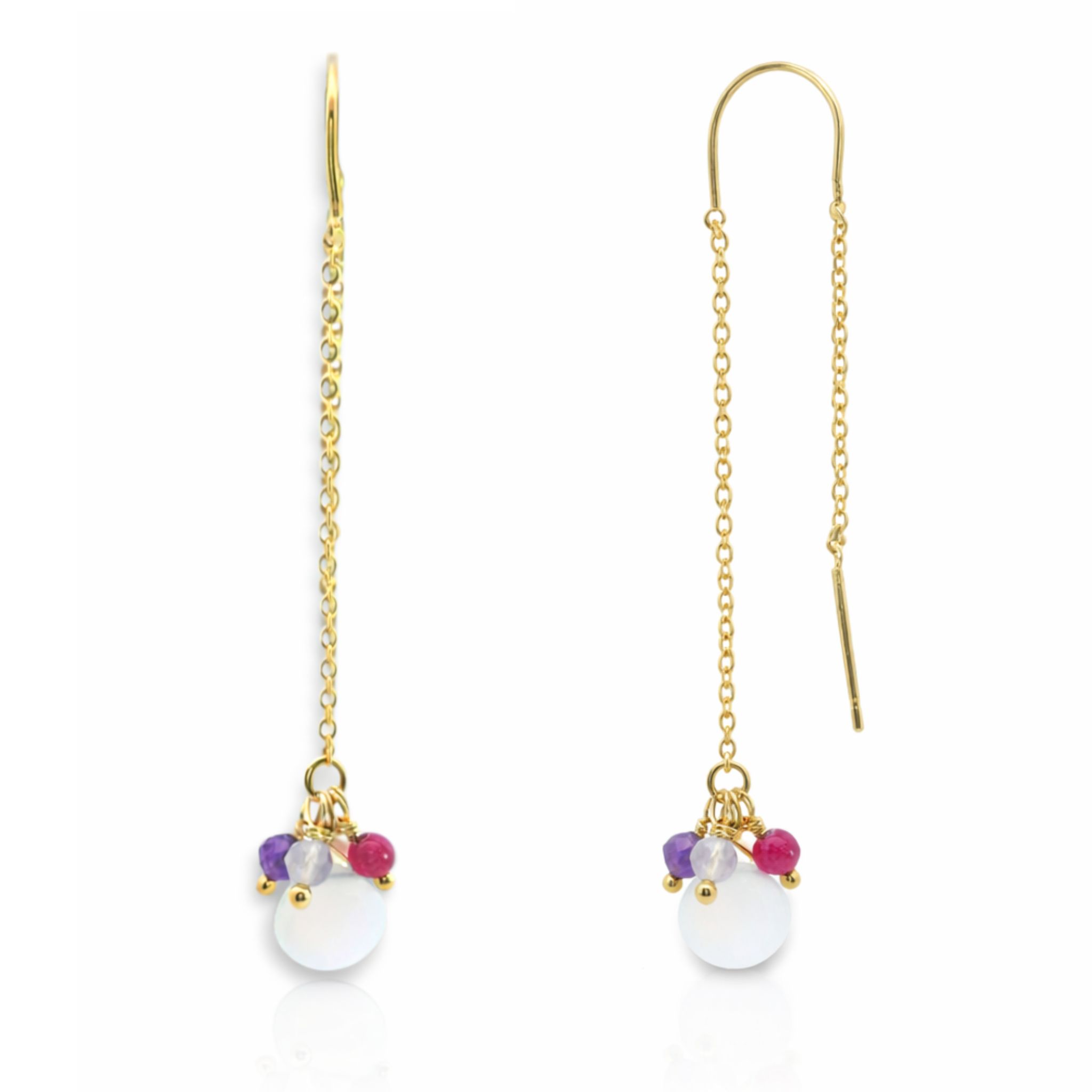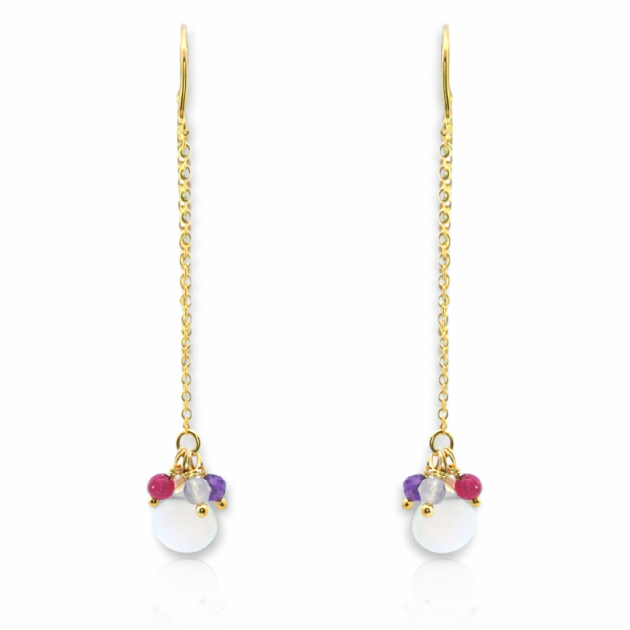 Das besondere Highlight sind die wunderschönen Edelsteine: Amethyste in verschiedenen Lila-, Pink- und weißlichen Farbtönen, die den Ohrhängern eine faszinierende Farbvielfalt