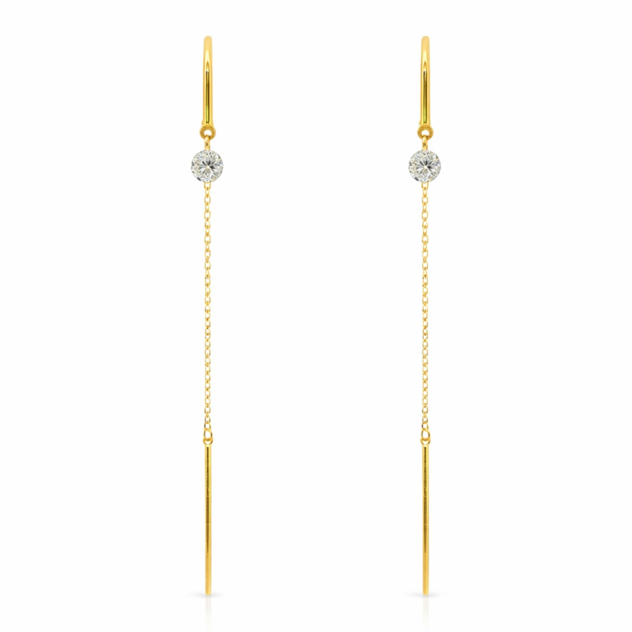 Elegante Fadenohrringe aus 750 Gelbgold mit schwebenden Brillanten