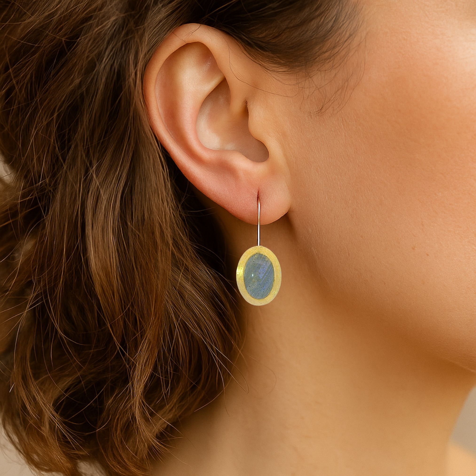 Die oval geschliffenen Labradorite wirken elegant und zugleich erdverbunden – perfekt für Frauen, die Individualität und Natürlichkeit lieben.