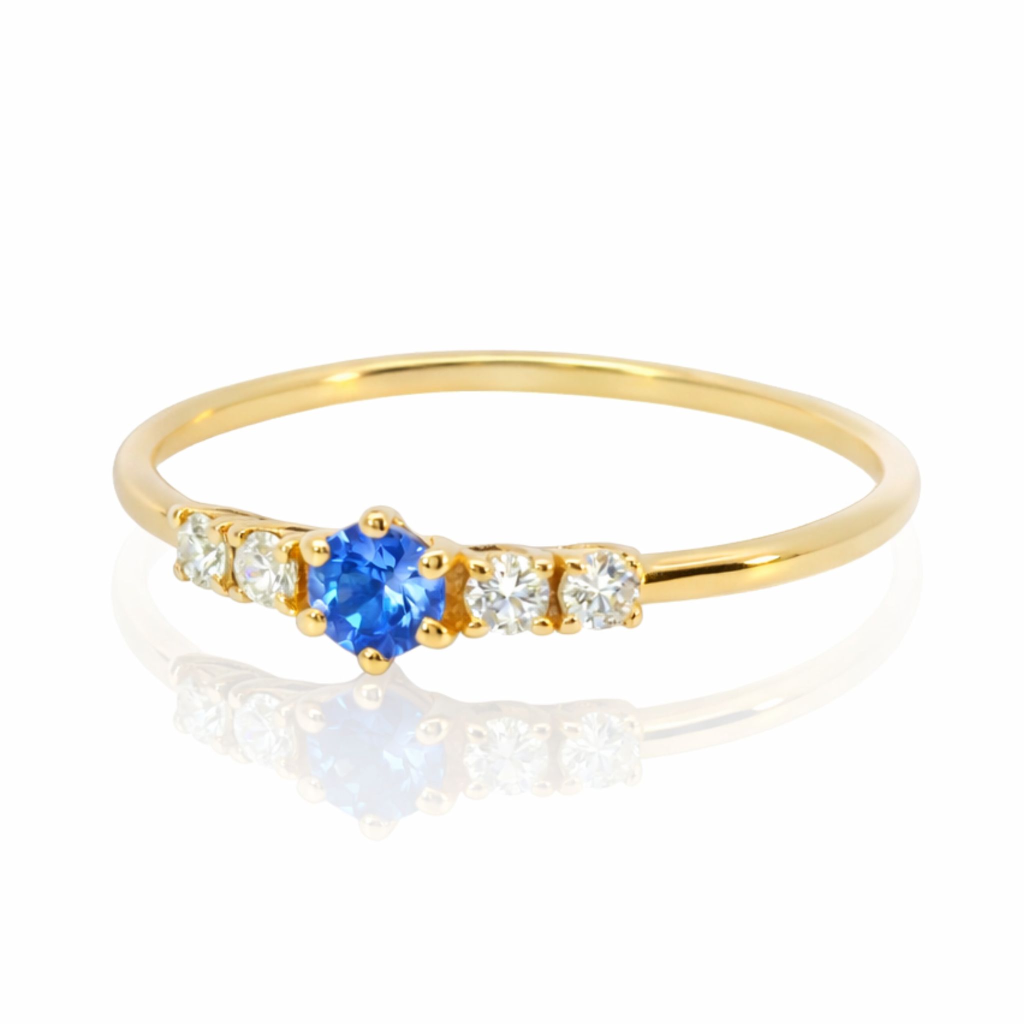 Die schlanke Ringschiene aus warm schimmerndem Gelbgold betont die Leuchtkraft der Edelsteine und sorgt für einen zeitlosen, femininen Charakter.