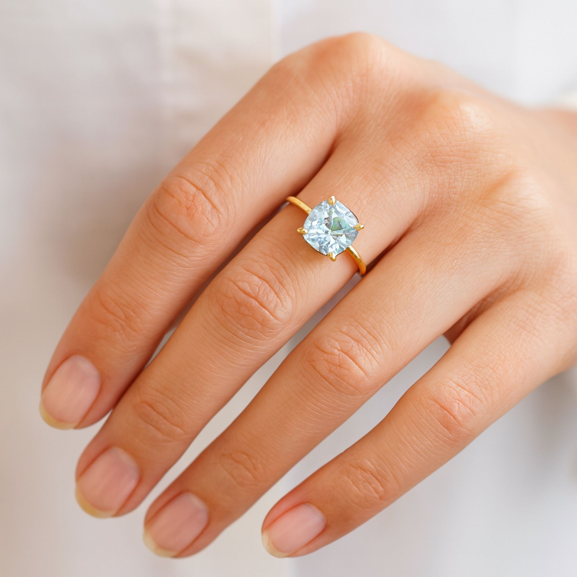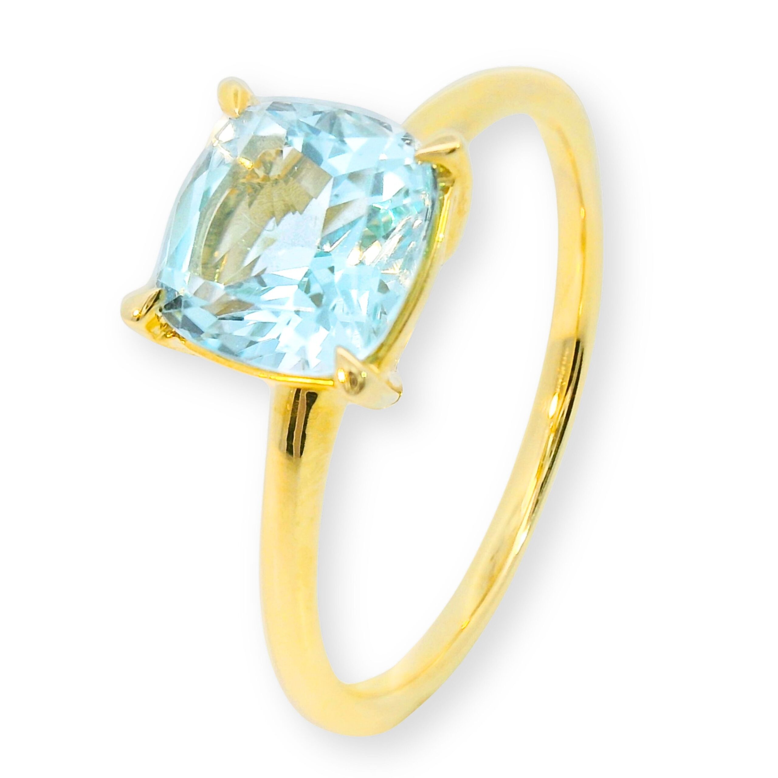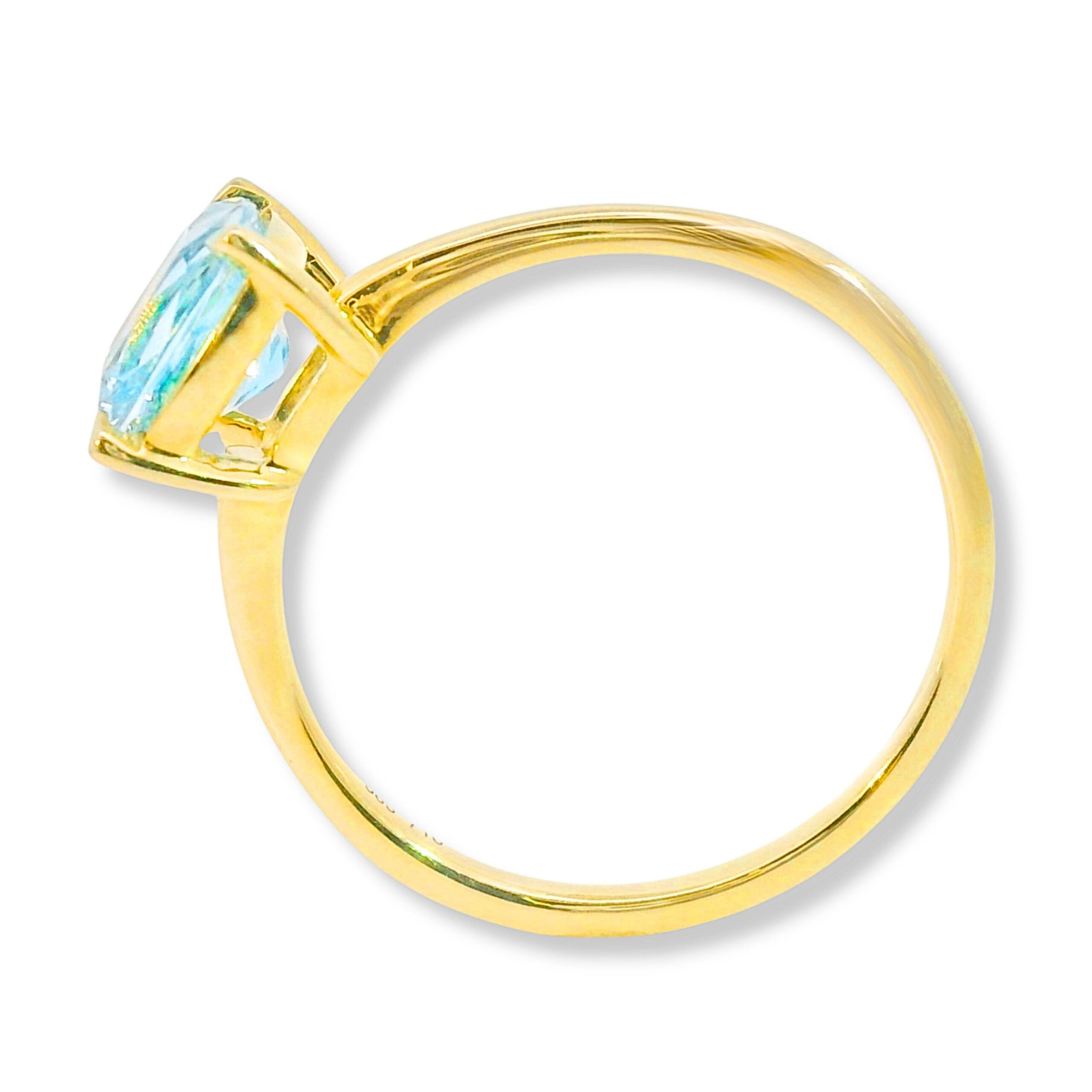 Die Kombination aus edlem Gelbgold und dem sanften Blauton des Topas schafft ein harmonisches Farbspiel, das zeitlos und modern zugleich wirkt.