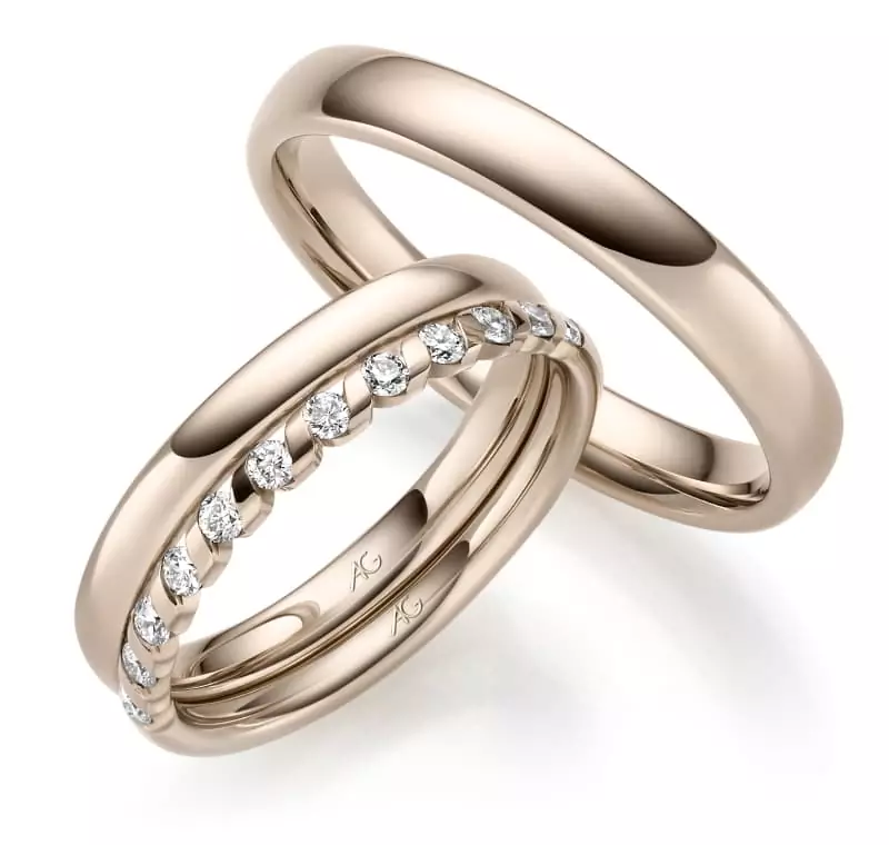 Haselnussgold Trauringe & Beisteckring mit 11 Brillanten