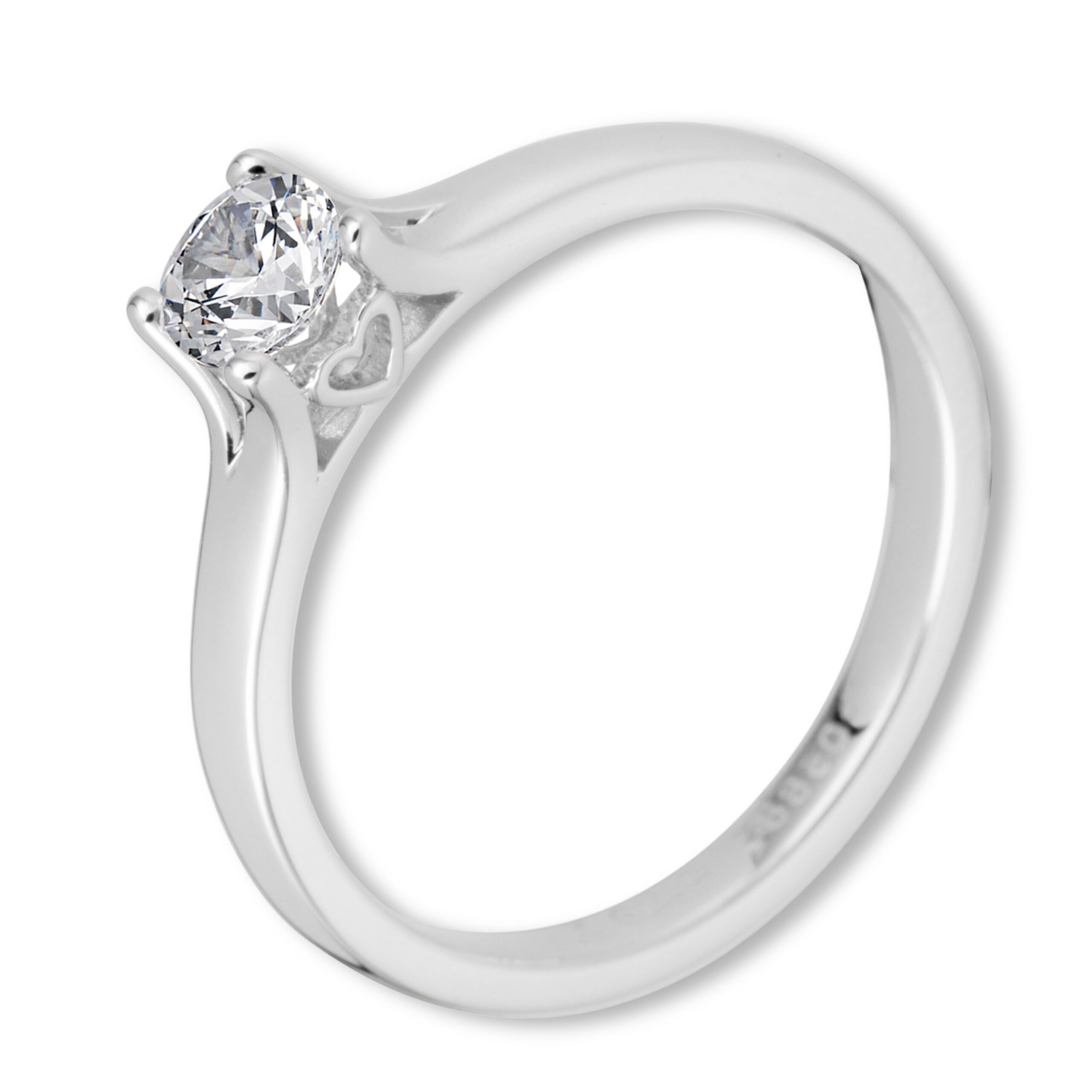 Im Zentrum des Rings sitzt ein wunderschöner Brillant im H/Si-Qualitätsgrad, der durch sein lebendiges Funkeln und seine Klarheit verzaubert. Das Besondere an diesem Ring ist die liebevolle Fassung: Auf der linken und rechten Seite des Brillanten sind kleine, zarte Herzen eingearbeitet, die den Ring zu einem einzigartigen Symbol der Liebe machen.