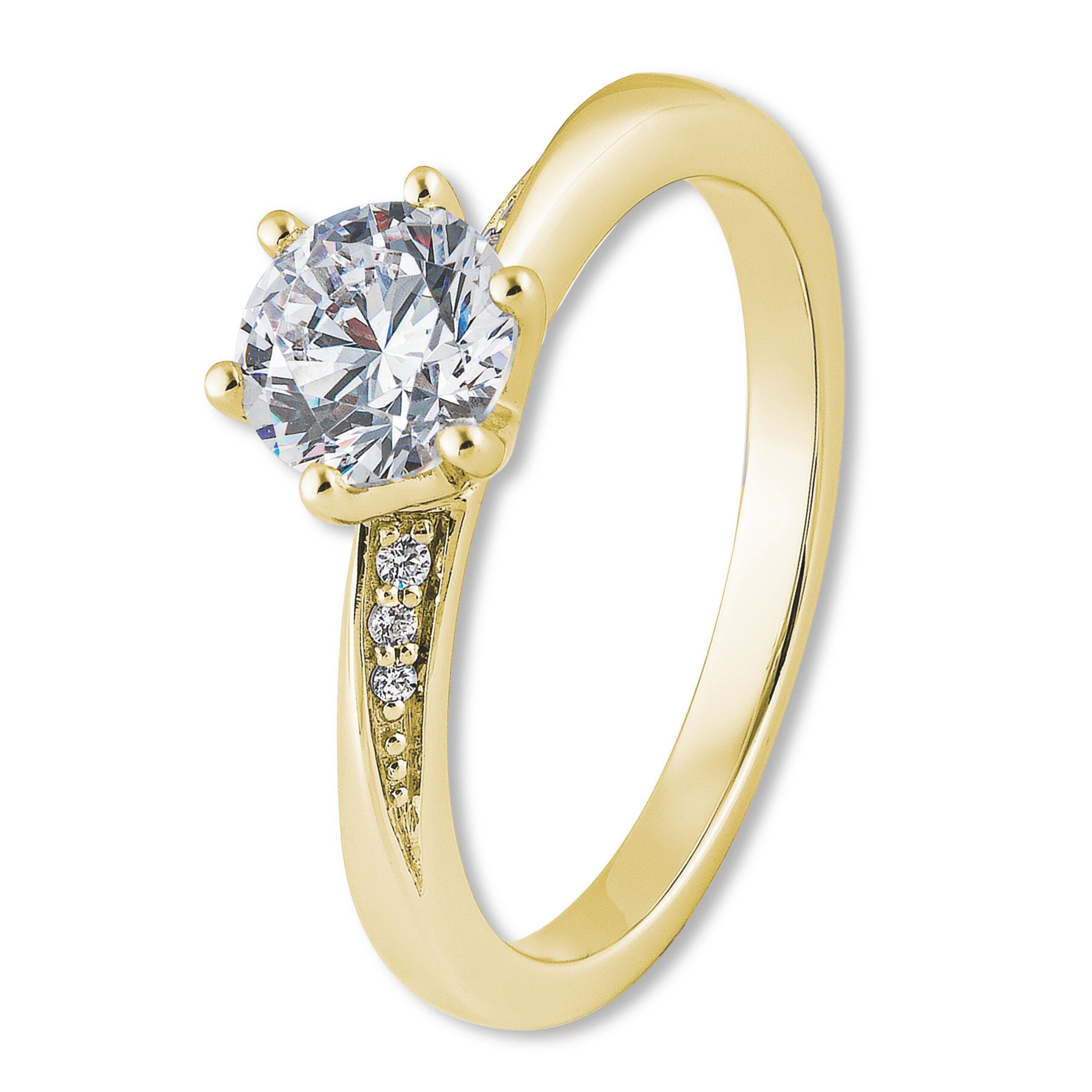 Im Mittelpunkt steht ein wunderschöner, großer Brillant mit 1,00 Karat, der in einer eleganten 6er Krappenfassung gehalten ist. Sein strahlendes Funkeln fängt das Licht auf eine faszinierende Weise ein und zeigt, wie besonders eure Liebe ist.Dazu kommen drei kleine, aber feine Brillanten, die kunstvoll in die leicht verschlungene Ringschiene eingearbeitet sind. Diese Details machen den Ring zu einem echten Unikat und spiegeln die Verbindung zwischen euch wider – schön, individuell und voller Bedeutung.