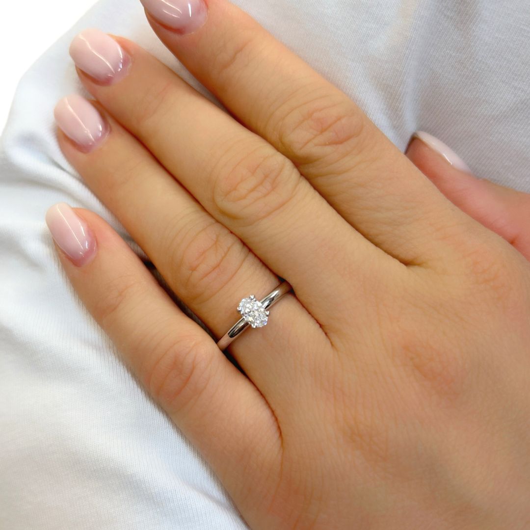 Im Mittelpunkt steht ein bezaubernder Diamant im ovalen Schliff, mit 0,40 Karat. Seine elegante Form und das sanfte, fließende Design lassen das Licht auf magische Weise tanzen, während die Qualität in H/Si für eine unvergleichliche Brillanz sorgt. Die gleichlaufende Ringschiene verleiht dem Ring eine harmonische, zeitlose Eleganz und betont die Schönheit des Diamanten in seiner vollen Pracht.