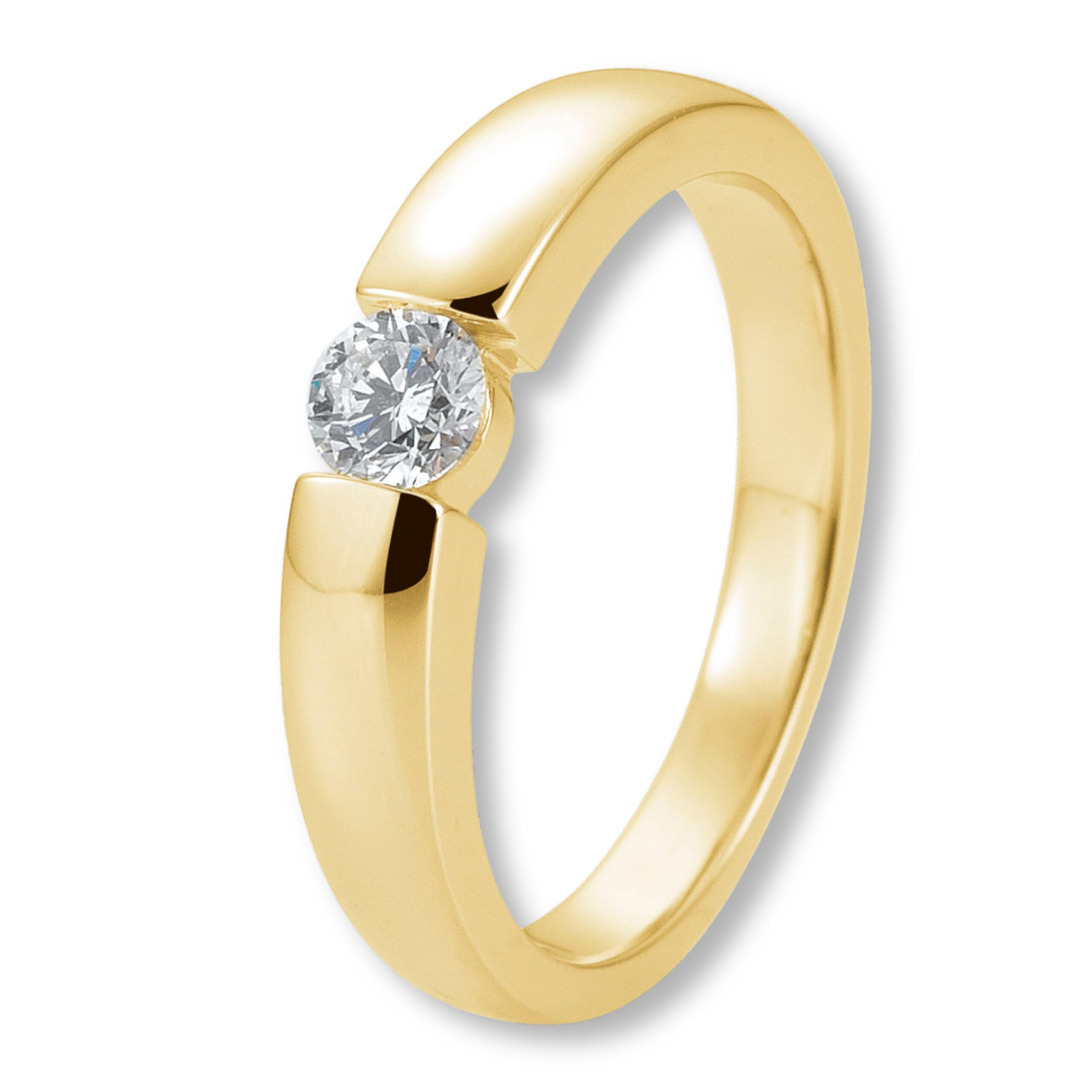 Im Mittelpunkt des Verlobungsrings strahlt ein funkelnder Diamant im Brillantschliff mit 0,25ct.