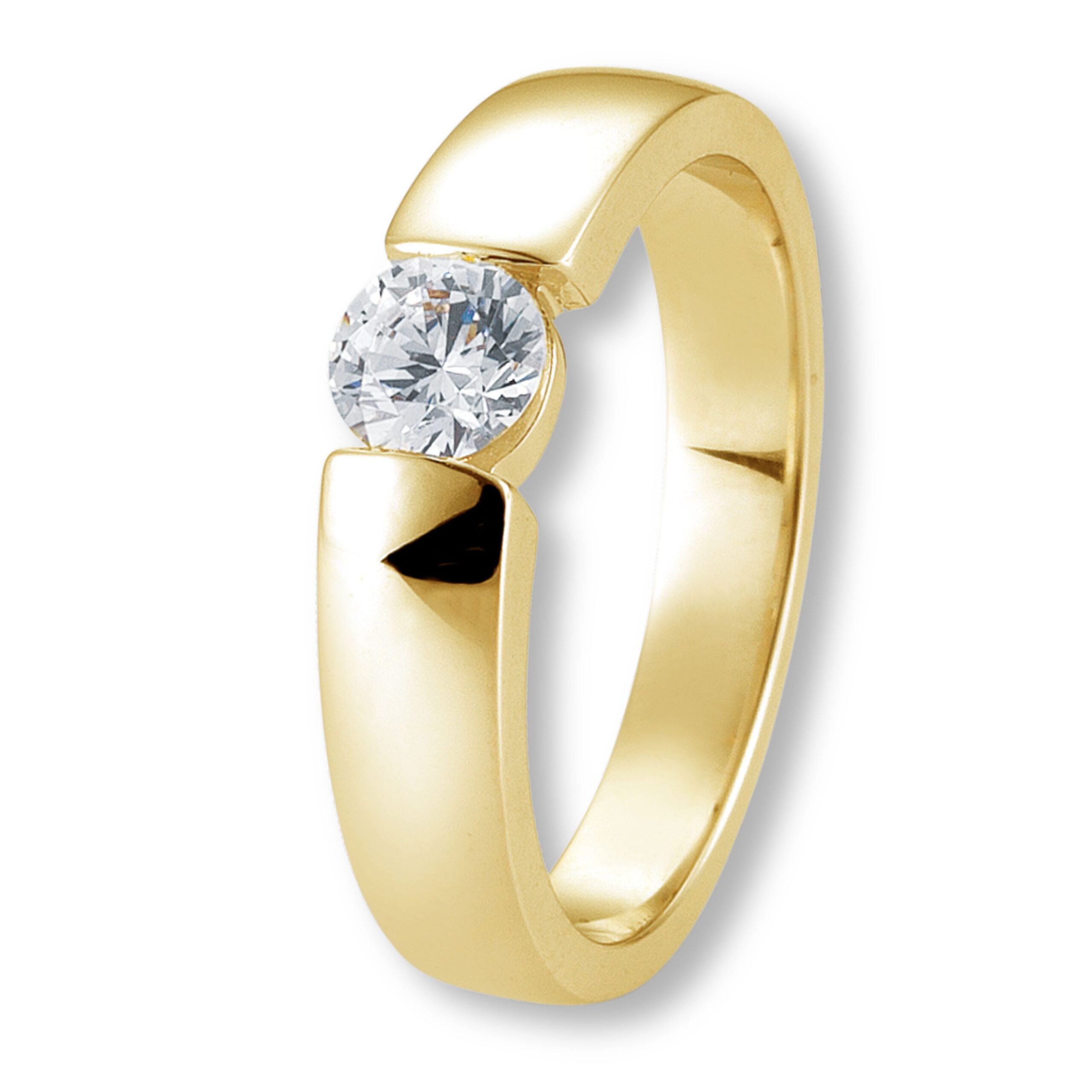 Im Mittelpunkt des Verlobungsrings strahlt ein funkelnder Diamant im Brillantschliff mit 0,50ct.
