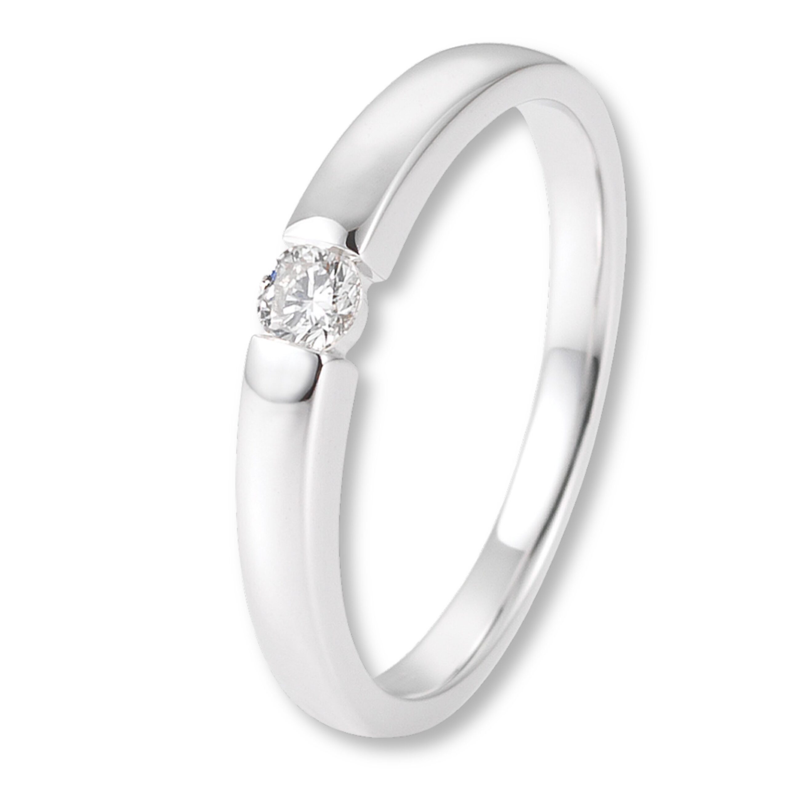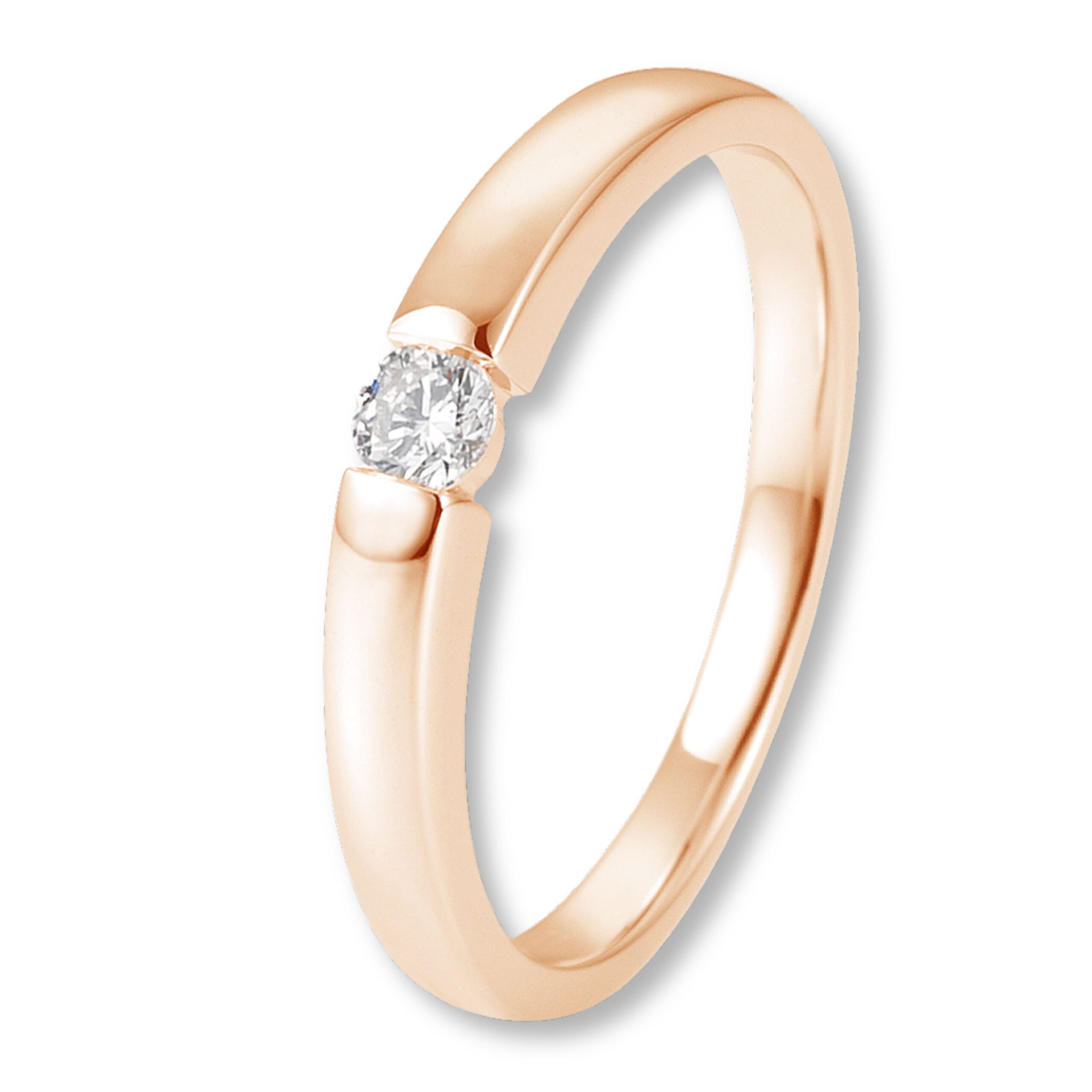 Im Mittelpunkt des Verlobungsrings strahlt ein funkelnder Diamant im Brillantschliff mit 0,10 ct.
