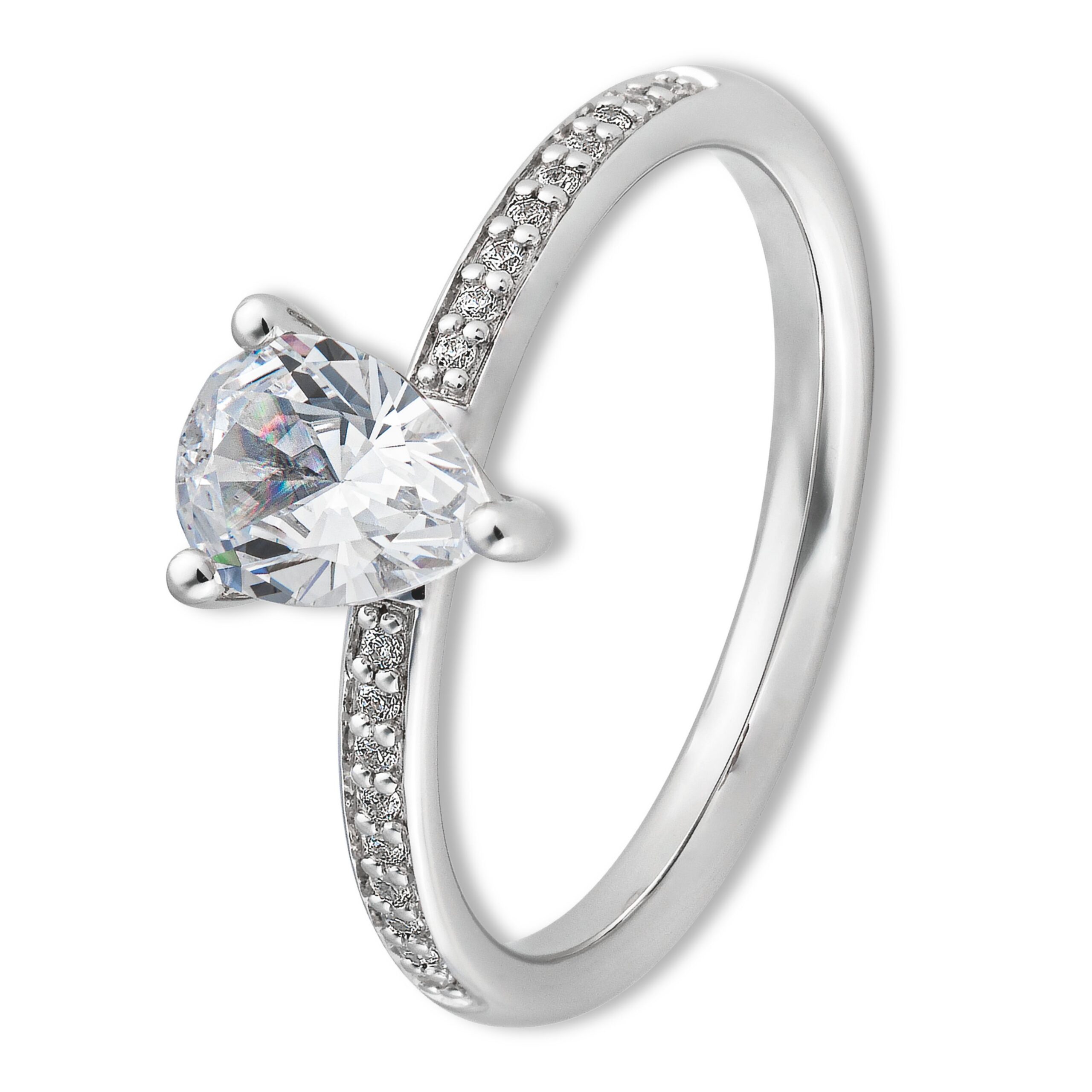 Im Mittelpunkt des Rings steht ein beeindruckender, tropfenförmiger Diamant, der das Licht auf zauberhafte Weise einfängt und eure Liebe in einem besonderen Glanz erstrahlen lässt.