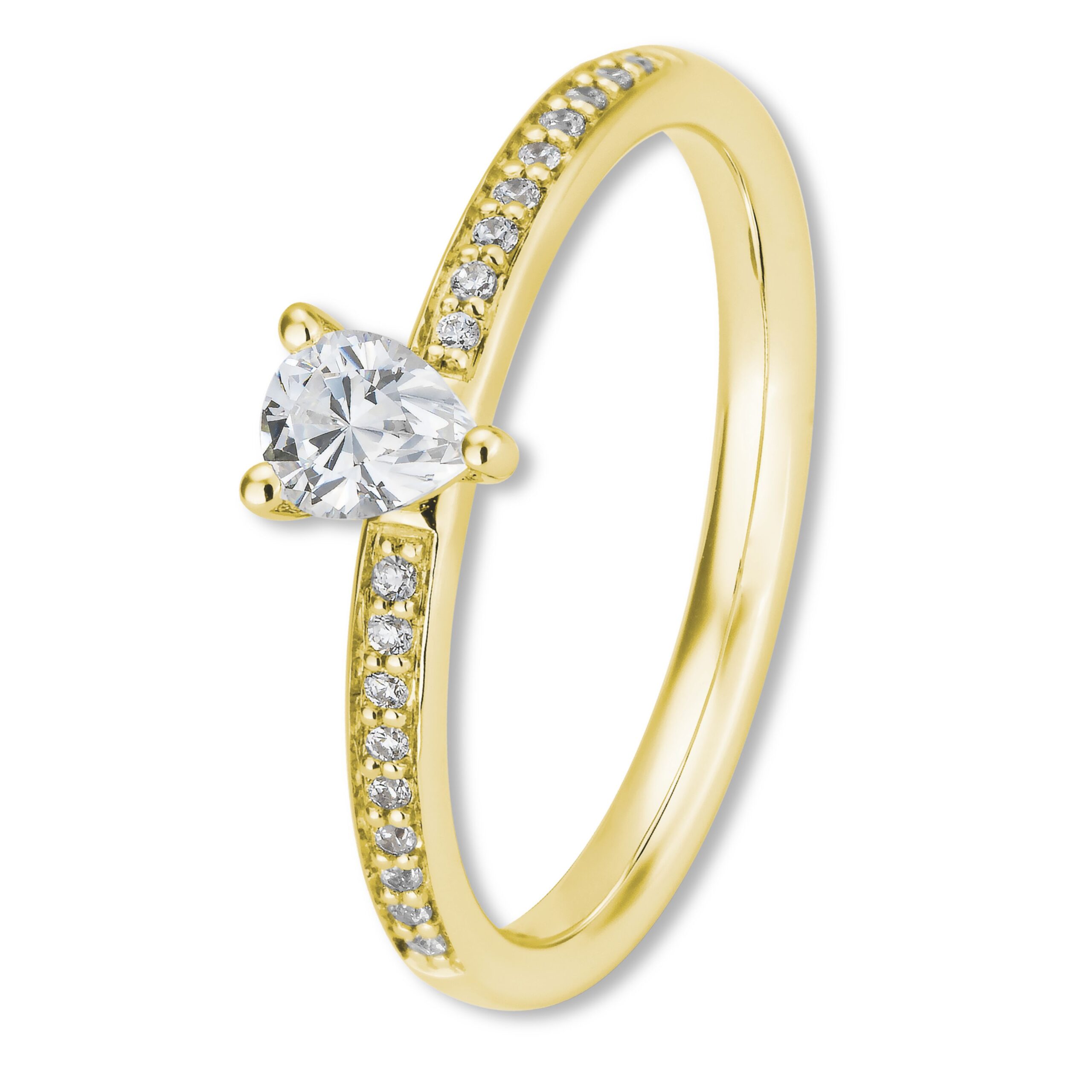 Im Mittelpunkt des Rings steht ein beeindruckender, tropfenförmiger Diamant, der das Licht auf zauberhafte Weise einfängt und eure Liebe in einem besonderen Glanz erstrahlen lässt.