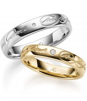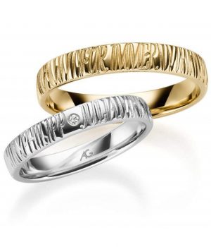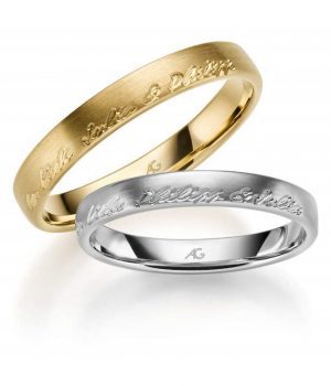ab € 907,-Legierungen: 333/375/585/750/ Pd500/Pd950/ Pt600/Pt950 Ringbreite: DR 3,5 mm HR 4,0 mm Außengravur: "FÜR IMMER - Du und Ich" (individualisierbar - mit eigenen Namen) ab € 907,- Preise unterliegen dem aktuellem… -