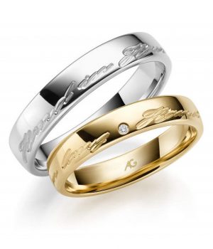 ab € 975,-Legierungen: 333/375/585/750/ Pd500/Pd950/ Pt600/Pt950 Ringbreite: DR 4,5 mm HR 4,5 mm Außengravur: “Du & Ich” (individualisierbar – mit eigenen Namen) ab € 975,- Preise unterliegen dem aktuellem Goldkurs & können… -