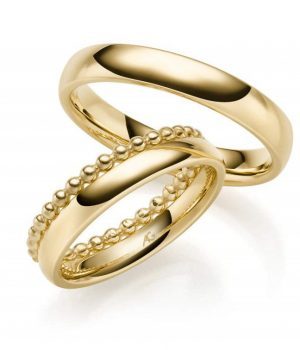 Set ab € 1037,-Legierungen: 585/750 Ringbreite: DR 3,0 mm HR 4,0 mm Kugelringbreite: 1,7 mm ab € 713,- nur Trauringe ohne Beisteckring ab € 324,- Kordelring Preise unterliegen dem aktuellem Goldkurs & können sich… -