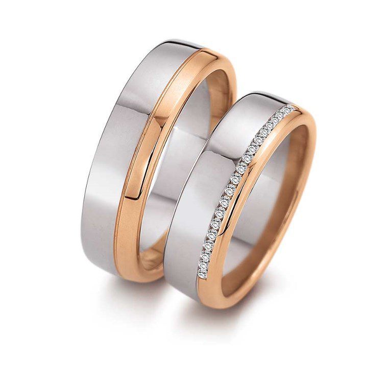 Set ab € 1583,-Legierungen: 333/375/585/750/ Pd500/Pd950/ Pt600/Pt950 Steine: 18 Brill. 0,09ct Ringbreite: Beisteckring 2,1 mm Trauring 5,0 mm Trauring ab € 798,- Beisteckring ab € 785,- Preise unterliegen dem aktuellem Goldkurs & können… -