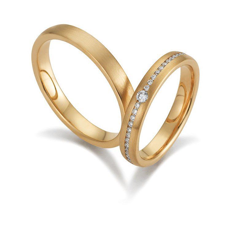 Set ab € 1583,-Legierungen: 333/375/585/750/ Pd500/Pd950/ Pt600/Pt950 Steine: 18 Brill. 0,09ct Ringbreite: Beisteckring 2,1 mm Trauring 5,0 mm Trauring ab € 798,- Beisteckring ab € 785,- Preise unterliegen dem aktuellem Goldkurs & können…