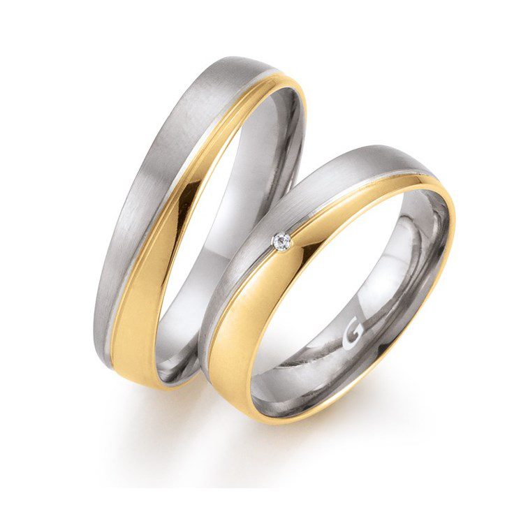 ab € 1238,-Legierungen: 333/375/585/750/ Pd500/Pd950/ Pt600/Pt950 Steine: 2 Brill. 0,05 ct Ringbreite: DR 4,0 mm HR 4,5 mm ab € 1238,- Preise unterliegen dem aktuellem Goldkurs & können sich deshalb täglich ändern.… -
